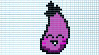 Завершим коричневым карандашом и белой гелевой ручкой. Получим готовый рисунок мультяшного баклажана!