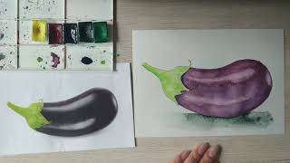 Зарисовываем фиолетовым карандашом основную часть баклажана.
