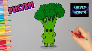 Прорисовываем контур левой части брокколи со всеми деталями. Внутри по центру ничего не рисуем, ведь овощ в разрезе.