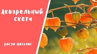 Видео: рисуем физалиса пером, тушью и акварелью