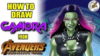 Закрашиваем фиолетовым карандашом волосы Гаморы. Дополнительными оттенками придаем объем.