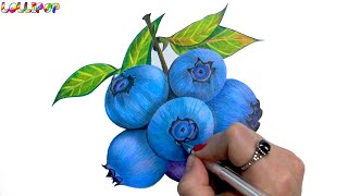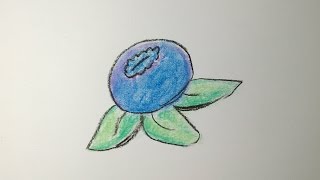 Закрашиваем синим карандашом полностью целую ягоду голубики и часть половинки.