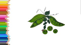 Закрашиваем зеленым карандашом все стручки вместе с горошинами.