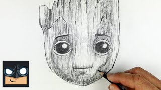 Вырисовываем детально верхнюю часть головы Грута, добавляя линии для придания текстуры дерева.