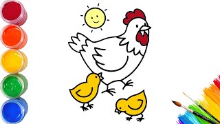 Как нарисовать курицу карандашами и красками поэтапно