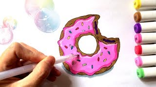 Затем раскрасьте крем пончика розовым карандашом. Сделайте тени тёмно-розовым. Жёлтым, розовым и синим закрасьте посыпку. Вот и всё! Аппетитный пончик готов!