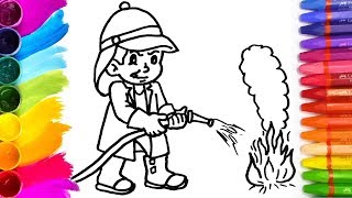 Как нарисовать пожарного который тушит огонь