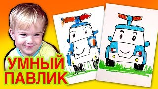 Как нарисовать Робокар Поли маркером и мелками поэтапно