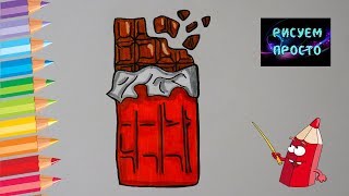 Как нарисовать шоколадку карандашами поэтапно