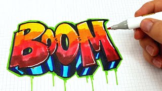 Как нарисовать слово BOOM в стиле граффити карандашами поэтапно