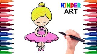 Создаем тень черным карандашом, а следом используем белый для бликов. Рисунок балерины готов!