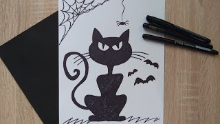 Как нарисовать черного кота на Хэллоуин