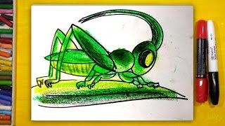 Видео: как нарисовать и раскрасить кузнечика для детей от 3 лет