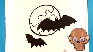 Как нарисовать луну с летучими мышами на Хэллоуин