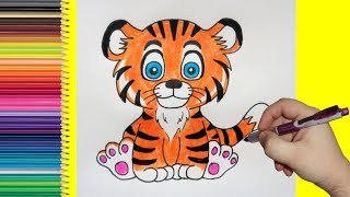 Как нарисовать маленького тигрёнка сидя