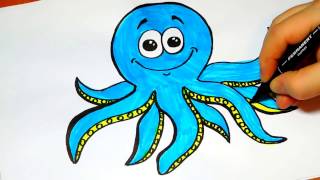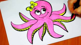 Видео: как нарисовать и раскрасить милого осьминога детям