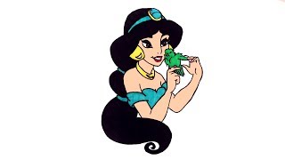 Вот и все вот так должна в конце урока выглядит принцесса Жасмин. Это был очень простой и веселый урок. Спасибо что рисовали на нашем сайте.