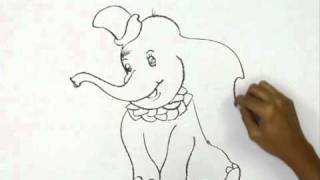 Как нарисовать слоненка Дамбо сидя поэтапно для начинающих