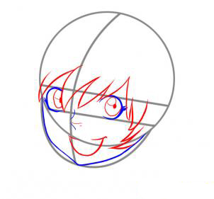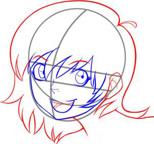 Затем продолжайте рисовать остальные черты лица и начала рисования волос. Добавить рот, чтобы дать этой простой счастливой эмоции, жизнь.