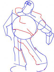 Теперь вы будете начинать с головы еще раз и вытянуть волосы линий, а также форма его лоб. Следующая деталь и определить форму груди пластину, а затем обратить подробным линии на правом плече. Затем начнется рисунок из трех линий вокруг талии, а затем привлечь обе руки и левого предплечья. Конец этого шага, опираясь левой манжете его костюм и пешком.