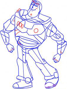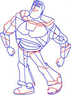 Это шаг, который начинает делать Buzz выглядеть, хорошо, Buzz. Вы сначала дать ему учеников, а затем нос и рот, что, кажется, дружественные ухмылкой на него. Затем вытянуть озадачены формой его левой руки и плеча, а также подробно предплечья на обеих руках и добавить его пальцами. После этого подробно промежность и область подробно правой голени и стопы или обуви. Перед отъездом обратить определении линии на левый сапог.