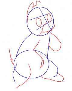 Теперь вы будете добавлять формы ушей, а затем начать формирование из головы. Вы в следующий раз сделать два овальной формы для глаз, а затем подкладка для его морду. Переместить вниз немного и привлечь начале линии для его руки, а затем его короткими ногами. Конец этот шаг, растягивая зубчатой ??линии за его хвост.
