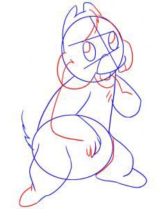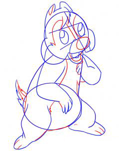В следующем шаге вы сейчас начать рисовать из формы лица Дейлс более подробно. Начало давая ему волосы, а затем глазные яблоки. Его пухлые щеки находятся рядом вместе со своими двумя большой площади зубов.Дайте ему нижнюю губу и привлечь больше из его рук и рук.После этого эскиза в левую ногу.