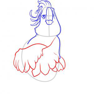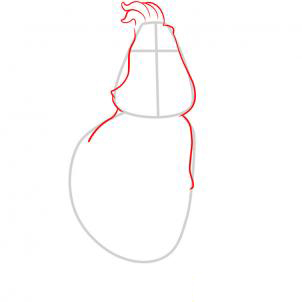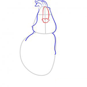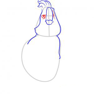 Здесь вы начнете набрасывать этой птицы пушистая голова пернатых, а затем вытянуть его плечи. Не забудьте эскиз в короне перьев.
