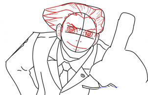 Добавить линию под голову, что сделает его подбородок позже. Затем сделать базу своего костюма. Вы можете сделать костюм в любом случае вы хотите, хотя я предпочитаю, чтобы начать с большой формы V.