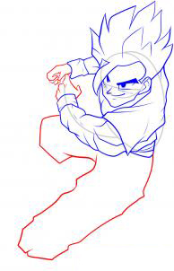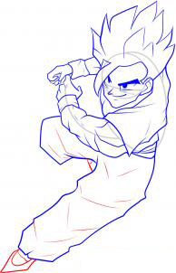 Для последнего шага рисунок, я хочу, чтобы вы наметить ботинки или ноги, а затем эскиз во всех этих подробным складки, раз, и морщин линии на брюки Сын Гохан's. Стереть линии и формы, что вы обратили на первом шаге, и вы все сделали.