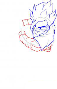 Теперь, когда мы получили лицо Сына Гохан все обращается в систему, вы можете начать набрасывать верхняя половина его тела, начиная с рукава, а затем подкладка для спины. Одежда очень подробный, поэтому не забудьте сделать в этих складки, складки и морщины. Не забудьте обратить в груди, а также.