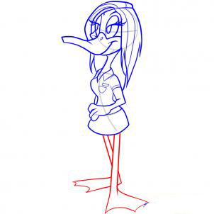 Эскиз из длинной шее, а затем начать растягивая ее туловища. Ничья в ее воротник рубашки, а затем наметить грудь, талия, и оружие.