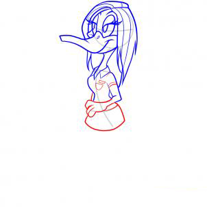Готово вытягивая ее за руку, а затем вытянуть ее трех пальцев руки. Наконец для этого шага, рисовать рукав подкладки, и карман и имя метки на ее рубашке, а также колоколообразной юбкой.
